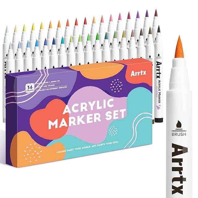 Arrtx 36色 アクリルマーカー ロックペインティング用 柔軟なブラシチップ ペイントマーカー アート用品 ファブリックペイント ファブリックマーカー ペイントペン アートマーカー 防水ペイント DIYクラフト作り