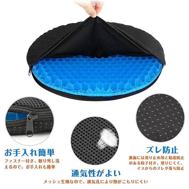 商品名:Perphin ゲルクッション ドーナツクッション 円座クッション 座布団 体圧分散 腰楽クッション 空洞デザイン 柔軟性 通気性 滑り止め カバー付き 自宅 オフィス 車 椅子に適用