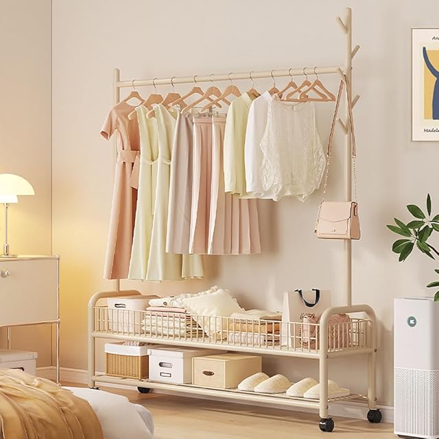 【うまく設計された】洋服ラック の脚部には頑丈なボールタイプのキャスター使用しています。洋服を掛けるときに簡単に移動でき、着替えや掃除の際にもストレスなく簡単に移動できます。