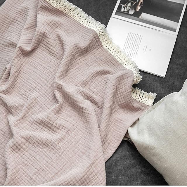 【 ブランケット ひざ掛け 】 落ち着いた色合いでおしゃれなガーゼケット フリンジがかわいい こども ガーゼケット おしゃれ 綿100% 4重ガーゼ 100x130cm ピンクベージュ