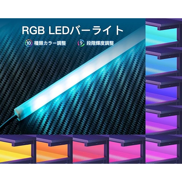 【RGBバーライト付き、お部屋の雰囲気が変わる】ゲームテーブルには10段階調色・9段階調光のLEDバーライトを搭載しており、気分やシーンに合わせてカラーを切り替えることができる。より頑丈で長持ちやすい。臨場感にあふれるゲーム雰囲気だけではなく、温かみのある学習・作業環境も作り出せる。
