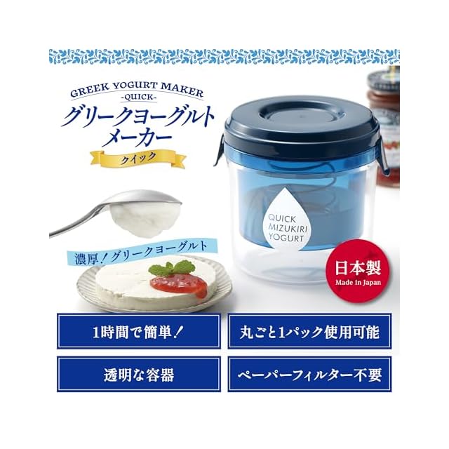 貝印 KAI ヨーグルトメーカー クイック 日本製 簡単 水切り 1時間でできる グリークヨーグルト ブルー クリア DL7263