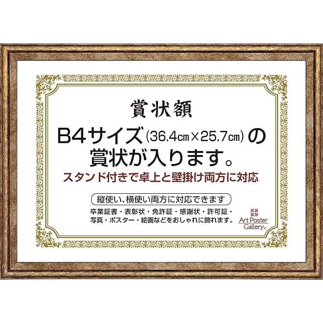 賞状 額縁 B4 サイズ 金色 ゴールド 横 縦 フォトフレーム 卓上 壁掛け 写真立て 写真入れ ポスターフレーム