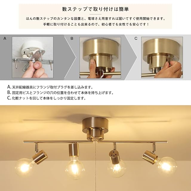 【取り付けカンタン】:ほんの数ステップのカンタンな設置と、電球さえ用意すれば届いてすぐ使用開始できます。手軽に取り付けることも出来るので、初心者でも女性でも安心です!