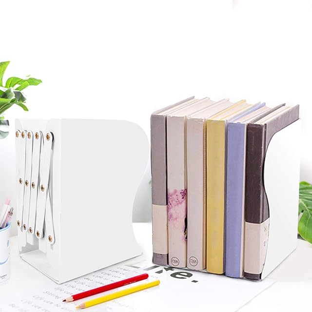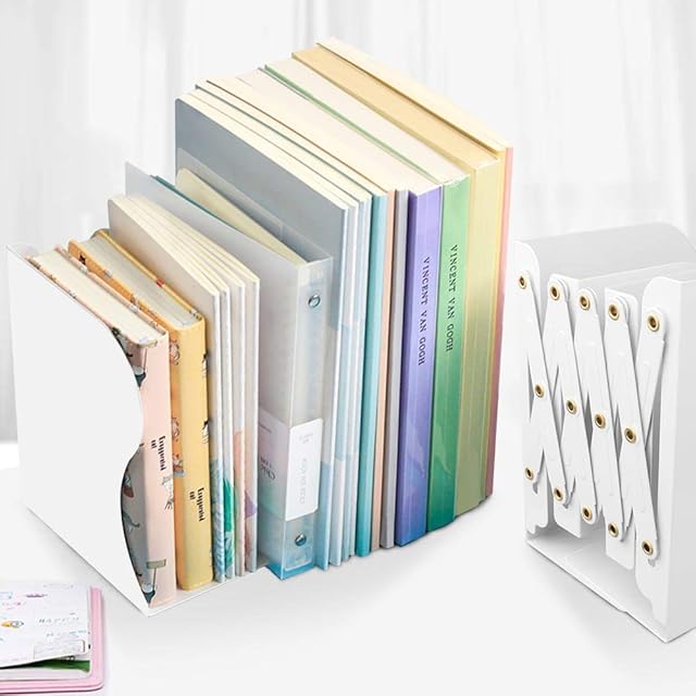 Youtumall ブックスタンド 2個入り 本立て 伸縮自在 卓上収納 倒れない ブックエンド 金属製 仕切りスタンド デスク整理 (2個-白)