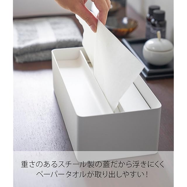 山崎実業(Yamazaki) 蓋付き ペーパータオルケース ホワイト 約W26×D13×H8cm タワー tower ペーパータオル ティッシュケース 4761