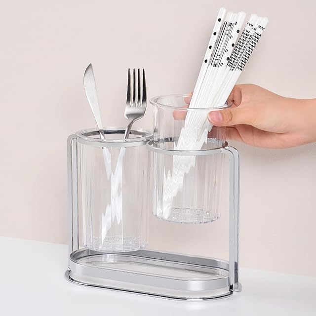 DoocliB 箸立て キッチン 水切り ステンレス カトラリースタンド 箸入れ 透明 箸 スプーン フォーク セット 多機能 キッチンツールスタンド 箸 スプーン セット 収納便利 おしゃれ(箸立て-ダブル 丸型)