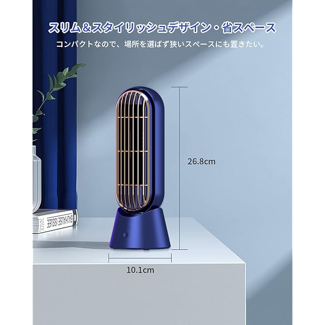 タワーファン 卓上式 羽なし 【4000mAh大容量バッテリー内蔵&90°自動首振り】3段階風量調節 スリム扇風機 充電式 静音 省スペース パワフル送風 卓上扇風機 コードレス 扇風機 小型 リビング/オフィス/寝室などに最適