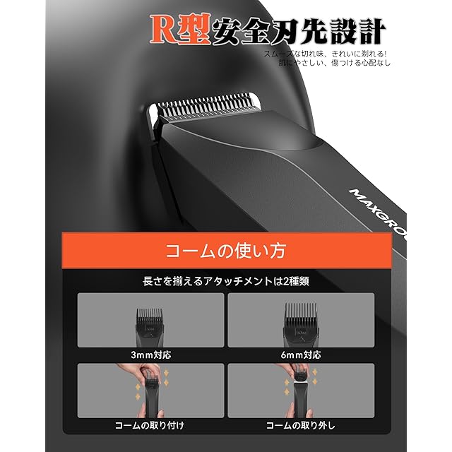 [自動研磨・切れ味抜群]ボディシェーバー は自動研磨システムを搭載しており、回転するたびに内刃が外刃で研磨され、常にシャープな切れ味。長持ちしやすく、耐久性が優れています。強力な高速モーターが搭載、切れ味が抜群です。刃の先端が尖っていないから、肌あたりやさしい、炎症やダメージ起こしない、汗腺や肌を傷つける心配もありません。敏感肌などの肌が弱い方にも安心してご使用できます。