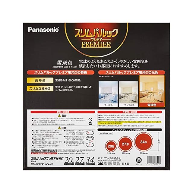 パナソニック 丸形スリム蛍光灯(FHC) 20形+27形+34形 3本入 電球色 スリムパルックプレミア FHC202734EL23K