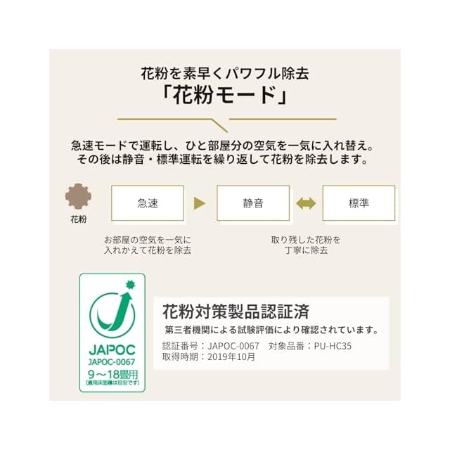 花粉を素早くパワフル除去「花粉モード」