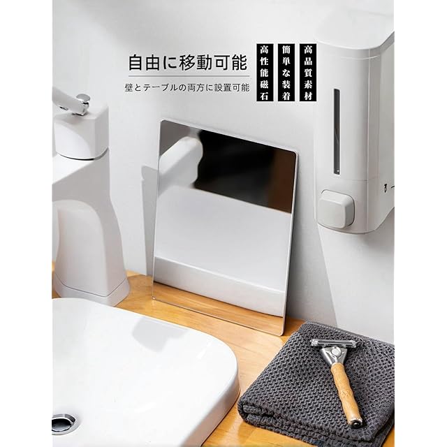 </b>「Giitoo 磁性镜子」是一款兼具功能性和安全性的浴室用镜。 <br/>※注意事項 <br/> 磁石対応壁面の確認 <br/>・設置前に壁面が「磁石が吸着する材質(鉄製など)」か必ず確認してください。 <br/> 設置前の壁面準備 <br/>・ほこり・水分・油分を拭き取り、完全に乾燥させてから設置してください。 <br/>・凹凸がある壁面では磁石の吸着力が弱まるため、平滑な面を選びましょう。 <br/> メンテナンスのポイント <br/>・鏡を外す際は「横にスライド」させて剥がすと、壁面傷つきを軽減できます。 <br/> 禁止事項 <br/>・磁石部分にドライヤーの熱風を直接当てないでください(変形の原因になります)。 <br/>・鏡の表面を強く押し付けたり、重い物をぶら下げないでください。 <br/>※トラブル回避のヒント <br/>浴室使用時は換気を充分に行い、マグネット部分の結露をこまめに拭き取りましょう。