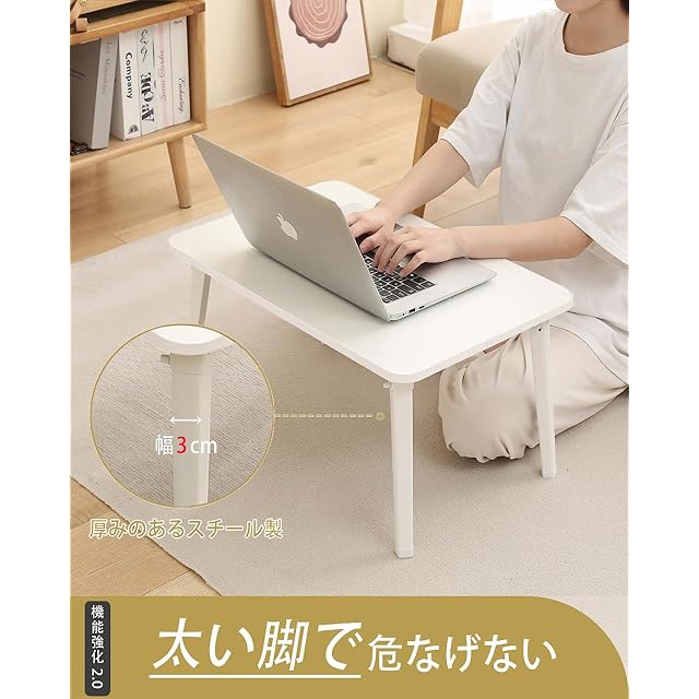 【折りたたみ式】:L THOOH ちゃぶ台の足が折りたためて、折りたたみ机ば厚さ約4.5cmになるので、ベッドの下などの隙間などに収納でき、便利です。テーブルをひっくり返して、ストッパーを外すだけで簡単に脚部を折りたためます。一人暮らしにとても適しています。