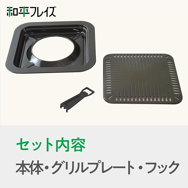 グリルプレート:アルミニウム合金(ふっ素樹脂加工)、寸法:25.5×25.5cm