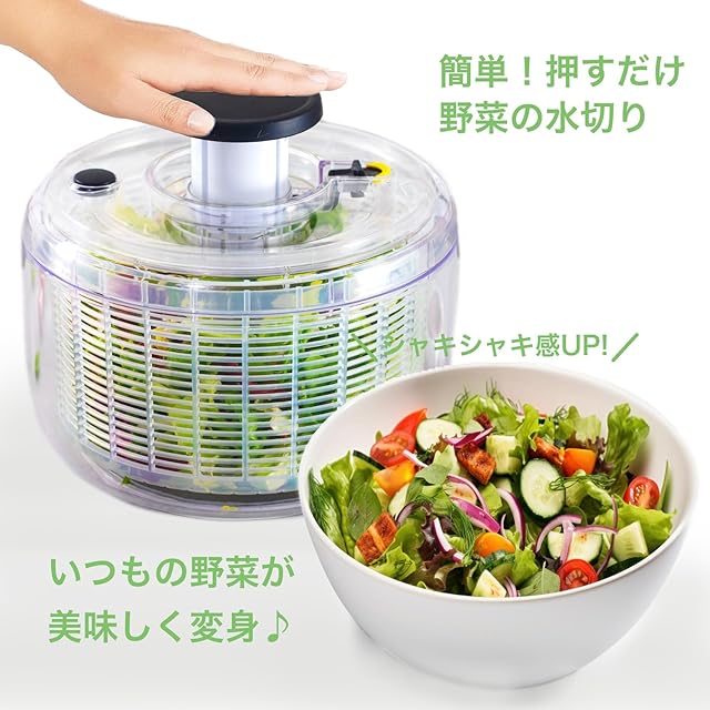 【✅便利なキッチンアシストアイテム★】簡単に水切りができてシャキシャキのサラダが作れる野菜水切り器サラダスピナーです!