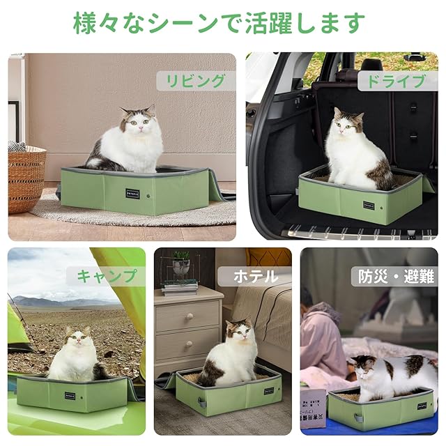 商品名:PETSFIT 猫 ポータブルトイレ [避難] 携帯トイレ コンパクト 防水 防災 おでかけ用 持ち運び グリーン