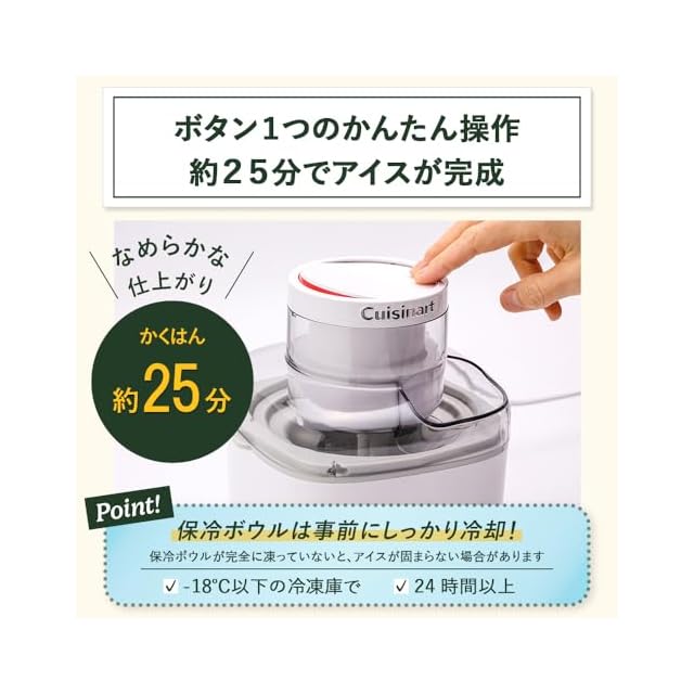クイジナート アイスクリームメーカー 手作りアイス コンパクト 専用レシピ付き ホワイト ICE-M10WJ