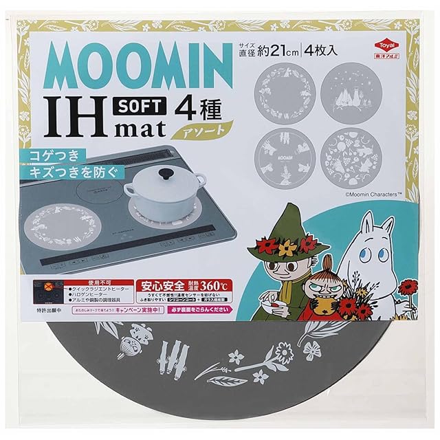 東洋アルミ IH マット IHクッキングヒーター シート 水洗い 薄いsoftタイプ グレー ムーミン 直径約21cm 4枚入 S3148