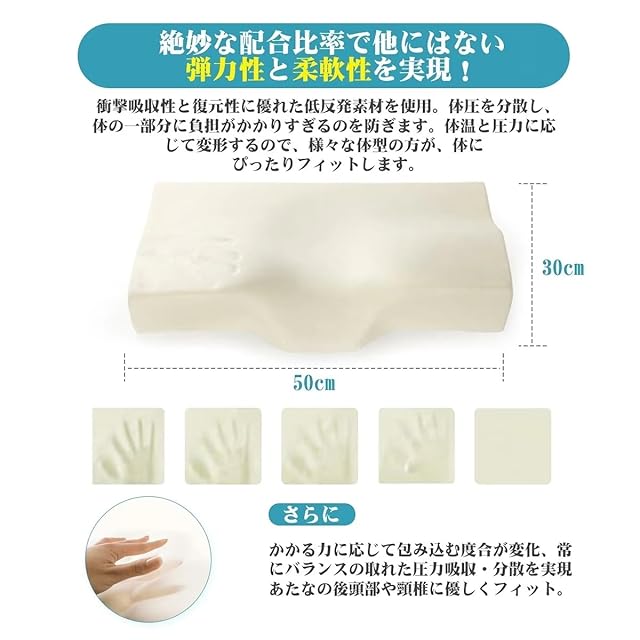 商品名:Sleepeach 枕 まくら 低反発 低反発枕 頭·首·肩を自然にサポート pillow ジャストフィット カバー洗濯可 50*30cm*10-6cm