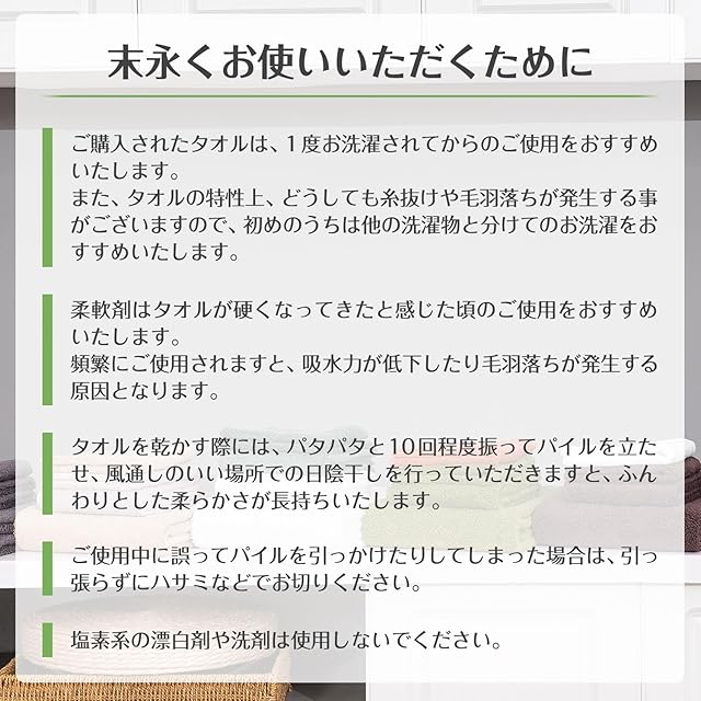 今治タオルブランド認定: 独自の品質基準をクリアした、高い吸水性と心地よい肌触りが特徴の日本製タオルです。