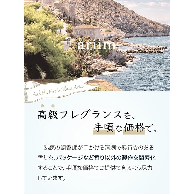 ariim(アリーム)は、〝高級フレグランスの香りを、手頃な価格で。〟をコンセプトとした、ルームフレグランスブランドです。熟練の調香師が手がける清冽で奥行きのある香りを、パッケージなど香り以外の製作を簡素化することで、極限までお安くご提供できるよう尽力しています。香りは、サボンを中心とした清潔さと開放感のあるものです。フィグやメロン、カシスのフルーティな香りから、サボンを中心とした清らかな香りへと広がる、香りの奥行きを体感できる設計にしています。
