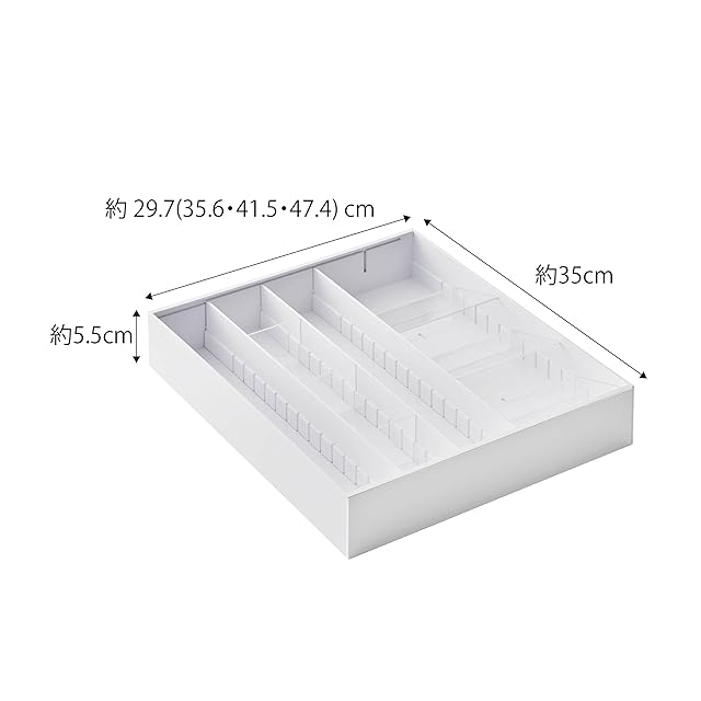山崎実業(Yamazaki) 立体 横伸縮 カトラリーケース ホワイト 約W29.7~47.4XD35XH5.5cm (幅6㎝ずつ 伸縮 )タワー tower 取り出しやすい 斜め仕切り 5415