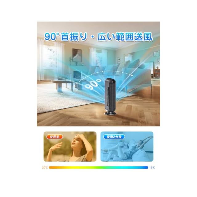 【2025新登場・風量ハイパワー・卓上扇風機】こちらのタワーファンにはハイパワーDCモーターが搭載されており、ブレードレス設計により強力で安定した静かな気流が得られます。ふわりとした微風からビューンと遠くに届く強風まで室内の空気循環を促進し、広範囲に風を届け、非常にパワフルな送風性能。高機能&高性能なリビングファンで、暑い時期をもっと快適に。