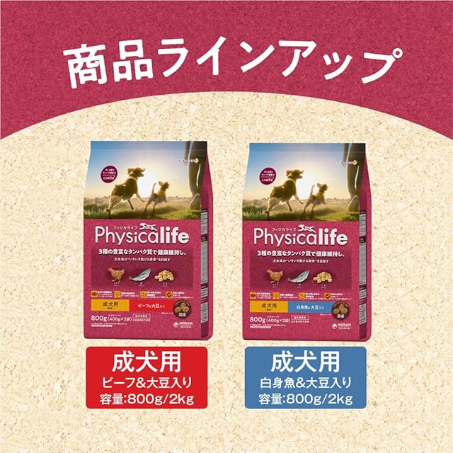 商品名:フィジカライフ (Physicalife) 成犬用 ビーフ&大豆入り2kg(400g×5袋の小分けパック) ユニチャーム ユニ・チャーム 総合栄養食