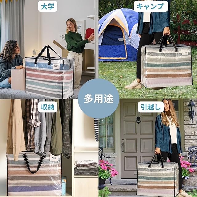 【耐水性】高品質で耐水性に優れたポリプロピレン製の織物素材を使用した布団収納袋です。耐久性があり、湿気やほこり、その他のダメージから大切なアイテムを守ります。汚れた場合は、簡単にウェットティッシュで拭き取ることができます。