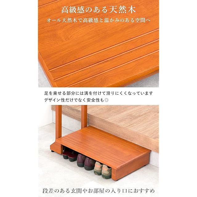 商品名:萩原(Hagihara) 玄関踏み台 玄関台 手すり付き踏み台 手すり台 スリム 【安心の耐荷重100kg】 ひざ 腰 負担軽減 子供 高齢者 ペット 幅70 ライトブラウン VH-7934LBR-S 幅70cm
