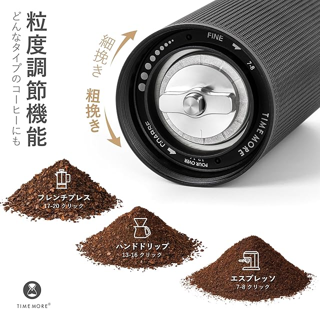 商品名:TIMEMORE 新 全金属 コーヒーミル 手動 タイムモア C3S PRO 手挽き コーヒー ミル 折り畳み式ハンドル ステンレス臼 段階粗さ調整可能 省力性 持ち運びやすい - NEW C3S PRO, ブラック