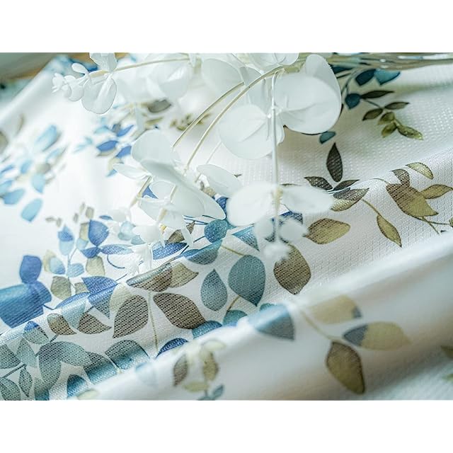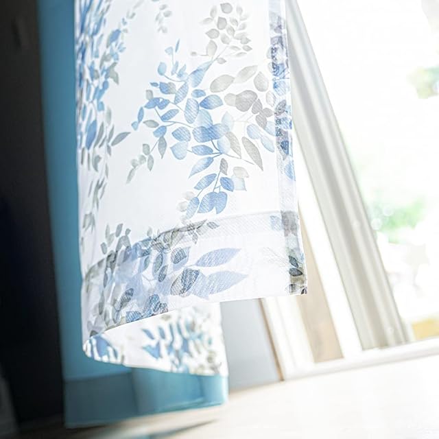 遮光カーテン 2枚 + 花柄 デザイン レース 2枚 + カーテンフック取り付け済み + カーテンタッセル ブルー 幅100×丈135(133)cm 4枚セット 4枚組 カーテンセット