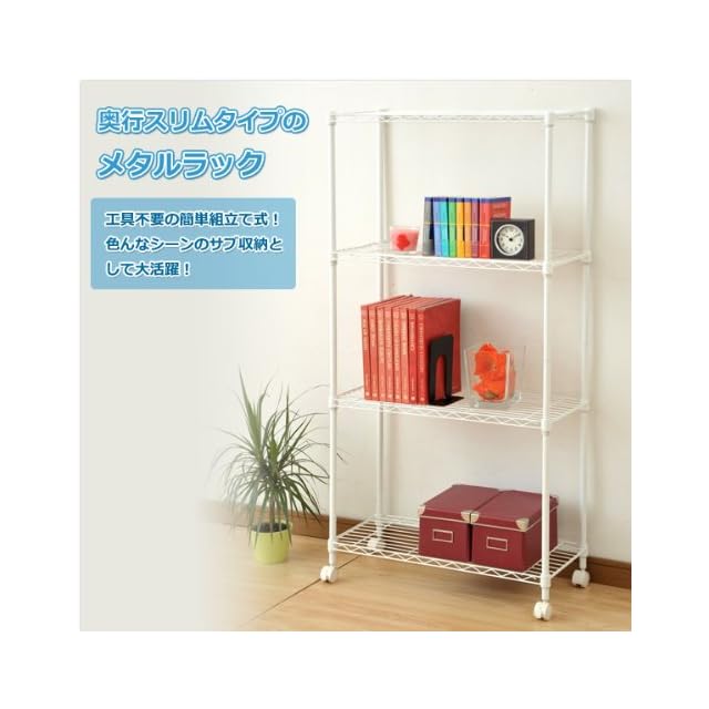 商品名:山善(YAMAZEN) スリムメタルシェルフ ホワイト (幅70棚) キャスター付き 4段 スチール RS-14734CJH(WH)