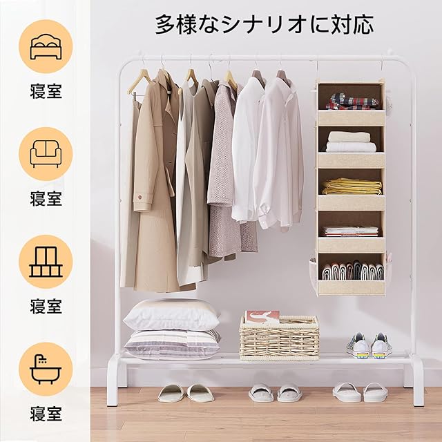 【スペースを活用】:ハンガーラック 狭いお部屋でもスペースを効果的に活用して、靴、帽子、衣類などを整理整頓できます。ロングコートやワンピースなどの長い衣類も十分に収納可。