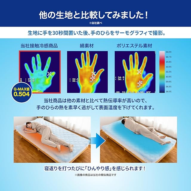 Q-MAX0.5以上の接触冷感素材と東レ「セベリス」中わたを採用した強冷感敷きパッド。四隅ゴムバンドでズレにくく、30cm厚のマットレスにも対応。洗濯機で丸洗い可能なうえ、雑菌抑制・防臭仕様で夏場も清潔。冷感マットやひんやり敷パットをお探しの方に最適な、夏の快眠をサポートする冷感敷パッドです。