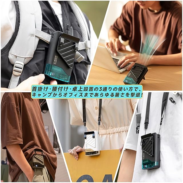 【人間工学に基づいた3WAY設計】付属のクリップで腰ベルト・バックパック・テントポールに瞬時装着。5段階風力調整:1檔(睡眠用)~5檔(炎天下作業用)までシーンに最適な風量を選択。あらゆるアクティビティに対応する万能な冷却 – 釣り、ハイキング、キャンプ、サイクリングなど、この屋外用冷却ファンは一日中快適に過ごせます。