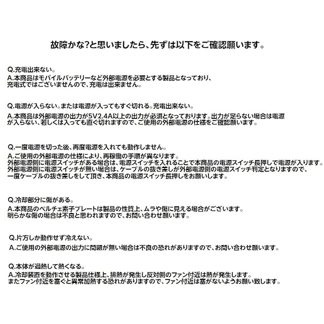 ご注意2:一定時間の使用により冷たさに体が慣れ、冷たさを感じなくなることがあります。冷却は継続しておりますが、冷たさを感じたい場合は休憩を挟みながらご使用下さい。