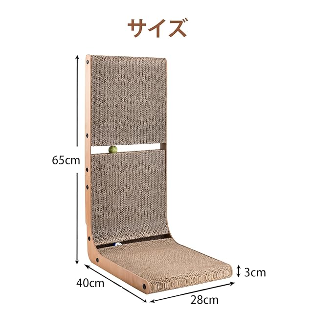 商品名:AUSCAT 猫 爪研ぎ 段ボール ガリガリウォール L字型猫 つめとぎ おもちゃボール付き 縦型 H69cm