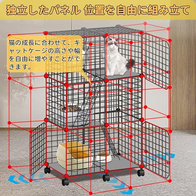 【組立簡単】自己DIYでケージを作ることができ、追加の工具なしで自由に組み立てることができる。また、猫の大きさに合わせて、状況に応じて組み立てることができます。組み立ては簡単で、ケージは広々として快適で、掃除もしやすいです。ケージは取り外し可能で、持ち運びやコンパクトな収納にも便利です。様々なペット用品を入れます。