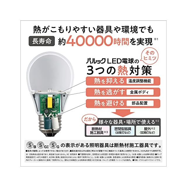 密閉型器具対応(※器具の種類によっては、保護回路が働き電力をおさえるため、明るさが低下する場合があります。※)
