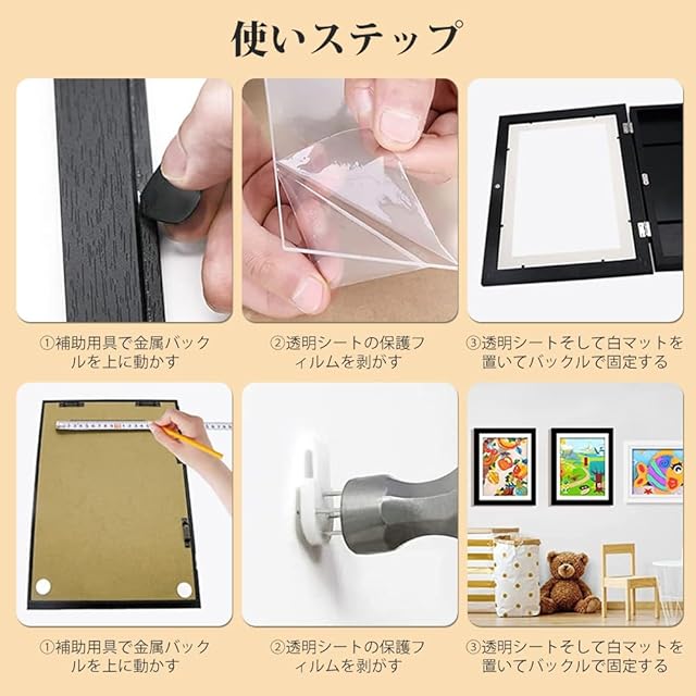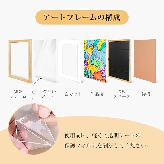 【アクリルシート】アートフレームの前面板には透明アクリル製シートを採用。ガラス素材より軽くて安全、破損を防ぐことができます。透明度が高くて子供の写真や作品のディスプレイに最適。