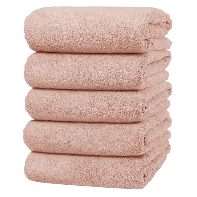 Joyful バスタオル タオル マイクロファイバー ホテル仕様 大判 60*120cm 5枚セット 高速吸水 速乾 耐久性 抗菌防臭 ふわふわ 柔らかい 肌触り (ピンク)