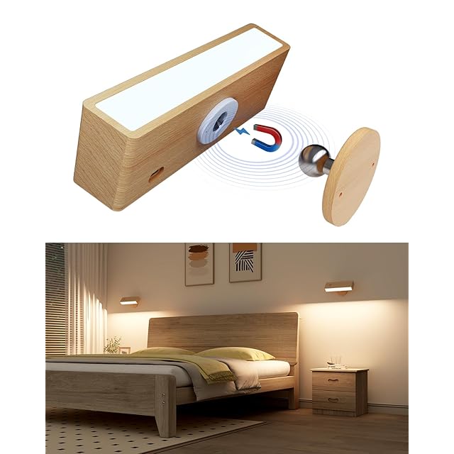 DetarZinLED ブラケットライト 間接照明 スポットライト工事不要 LED ウォールライト 電池式 ベッドサイドランプ コードレス 読書灯 無段階調光 360°照明角度対応 Tpye-C充電式 木製 壁掛けライト 目に優しい 4000k 高輝度 省エネ 壁掛け照明 マグネット&貼り付け型 壁掛けランプ タッチコントロール ルームライト