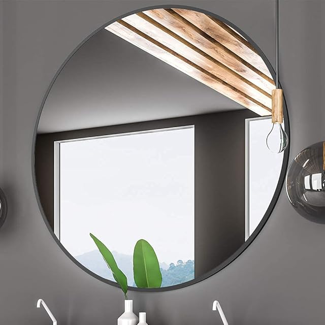 ANYHI 壁掛け鏡 浴室鏡 丸型 壁式 鏡 おしゃれミラー ウォールミラー 壁飾り 化粧鏡 玄関 洗面 トイレ バスルーム (ブラック, 円形直径50cm)