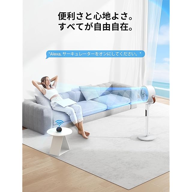 【3D首振りサーキュレーター扇風機】本製品は左右首振り120°、上下首振り105°、上下左右同時に首振り、広範囲に効率よく風を届けます、空気循環・部屋干し効率を最大限に高めることができます、より良い空気循環効果を実現。夏に家族で涼む以外にもエアコンと併用して空気の循環に使ったり、梅雨時期の室内干しにサーキュレーターとして使ったりなど、いろいろな使い方ができます。
