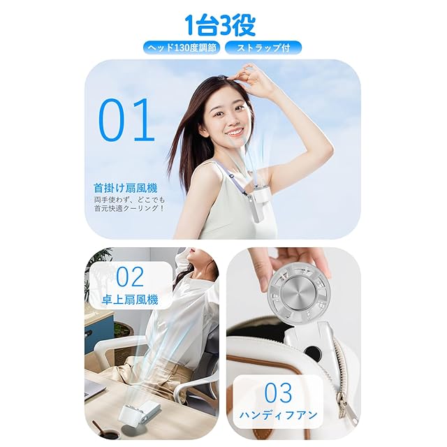 【4WAY瞬時変身&どんなシーンでも大活躍】 首掛け・手持ち・卓上・吊り下げがワンタッチ変形!首掛けは自転車通勤の汗対策に◎卓上ならPC熱をシュッと冷却! ベビーカー吊り下げ時は赤ちゃんのすべすべ肌をやさしくガード。90°ピタッ調整ヘッドで風先を自由自在に誘導。198g超軽量(桃1個分)だからバッグ収納もラクラク。熱帯夜の寝室から花火大会の雑踏まで、お出かけの相棒としてご一緒に。