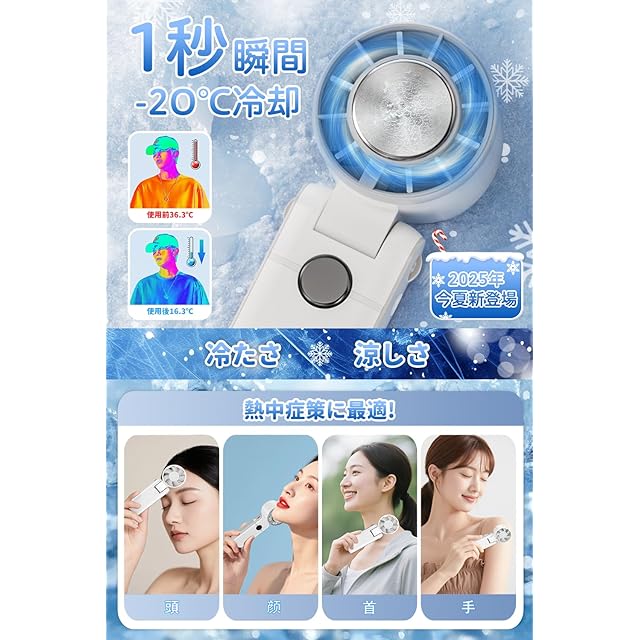 【2025年夏の新作!冷却プレート搭載ハンディファン】暑い夏でも快適な涼感を提供する画期的なハンディファンが登場!本製品は「冷却プレート」を搭載し、TEC超導冷却プレートとハイスピードモーターの最強コンビネーションで、瞬時に体感温度を最大20℃も下げることができます。TEC技術は通常、CPUの冷却装置に使用される高度な冷却技術で、熱を効率的に吸収し冷却することが可能です。この技術を活用することで、驚くほど迅速に体感温度を下げ、炎天下でもひんやりとした涼しさを長時間キープできます。