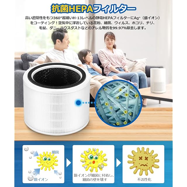 【銀イオン除菌フィルターとして】H13静電HEPAフィルターにAg+(銀イオン)をコーティング!フィルターに付着した細菌・ウィルスの繁殖を抑制します。細菌から赤ちゃんやお年寄りをしっかりガードします。コスパ最高!