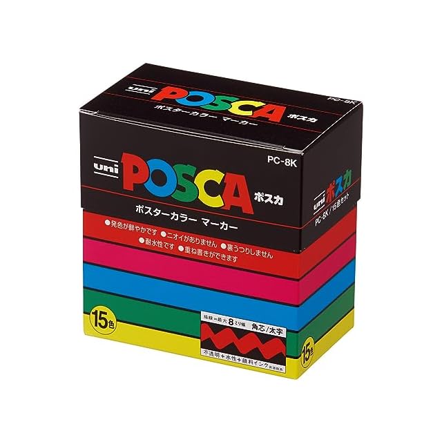 三菱鉛筆 水性ペン ポスカ 太字 角芯 15色 PC8K15C