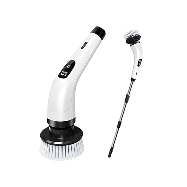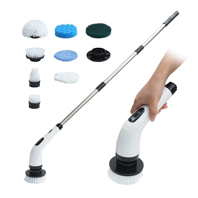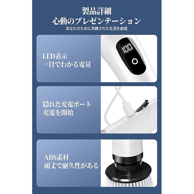 【軽量&豪華な付属品セット】本体はわずか303gと軽く、女性や高齢者でも片手で楽々操作。お風呂掃除に最適な8種類のブラシ、延長ポール、Type-C充電ケーブル、日本語説明書付きで、届いてすぐに使える安心のフルセットです。
